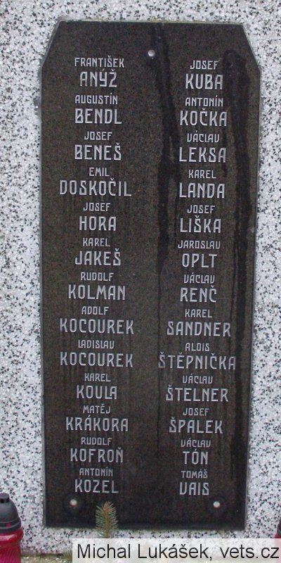FRANTIŠEK ANÝŽ, AUGUSTÍN BENDL, JOSEF BENEŠ, EMIL DOSKOČIL, JOSEF HORA, KAREL JAKEŠ, RUDOLF KOLMAN, ADOLF KOCOUREK, LADISLAV KOCOUREK, KAREL KOULA, MATĚJ KRÁKORA, RUDOLF KOFROŇ, ANTONÍN KOZEL, JOSEF KUBA, ANTONÍN KOČKA, VÁCLAV LEKSA, KAREL LANDA, JOSEF LIŠKA, JAROSLAV OPLT, VÁCLAV RENČ, KAREL SANDNER, ALOIS ŠTĚPNIČKA, VÁCLAV ŠTELNER, JOSEF ŠPALEK, VÁCLAV TÓN, TOMÁŠ VAIS