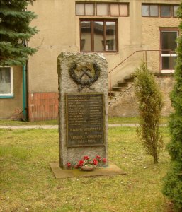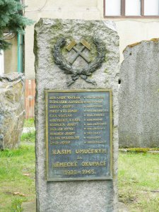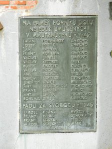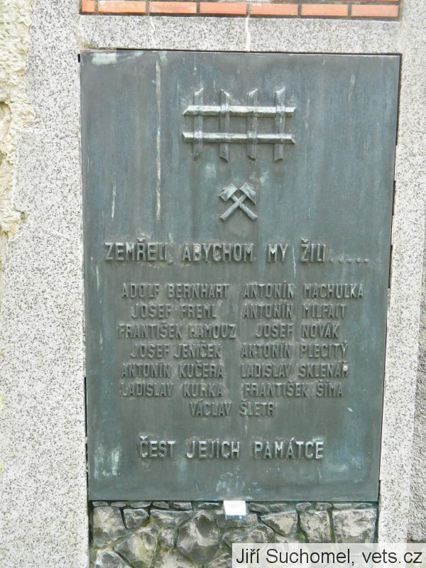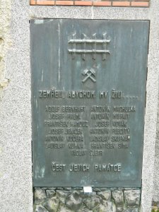 NA VĚČNOU PAMĚT OBĚTEM HRŮZNÉHO NĚMECKÉHO TERORU Z ŘAD HORNÍKŮ Z NAŠEHO DOLU VYVRAŽDĚNÝCH V LIDICÍCH DNE 10.6.1942
