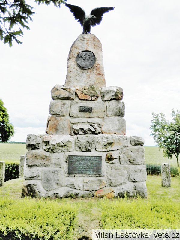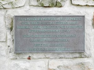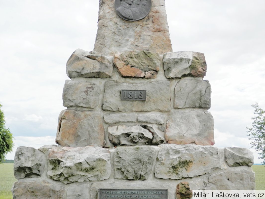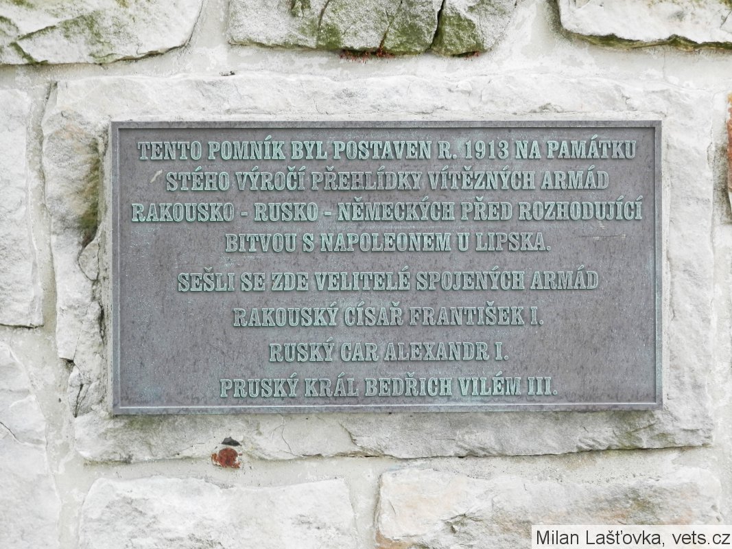 Pomník evropského významu k uctění památky 100. výročí osvobozenecké války proti Napoleonovi, byl odhalen 19. srpna 1913. Stojí v místech, odkud císařové sledovali přehlídku spojeneckých vojsk Rakouska, Ruska a Německa. Na vrcholu mohyly sedí orel s rozpjatými křídly, pod ním je umístěn medailon se jmény a poprsím Františka I., Alexandra I. a Bedřicha Viléma III. Pod medailonem štítek s datem 1813, pod štítkem pamětní deska s textem nápisu. Po celkovém restaurování pomníku v roce 2012, z důvodu opakovaného zásahu vandalů a zlodějů, tento je osazen plastikami orla, medailonu tří panovníků, pamětní desky a desky s letopočtem. (zdroj informační tabule před pomníkem)