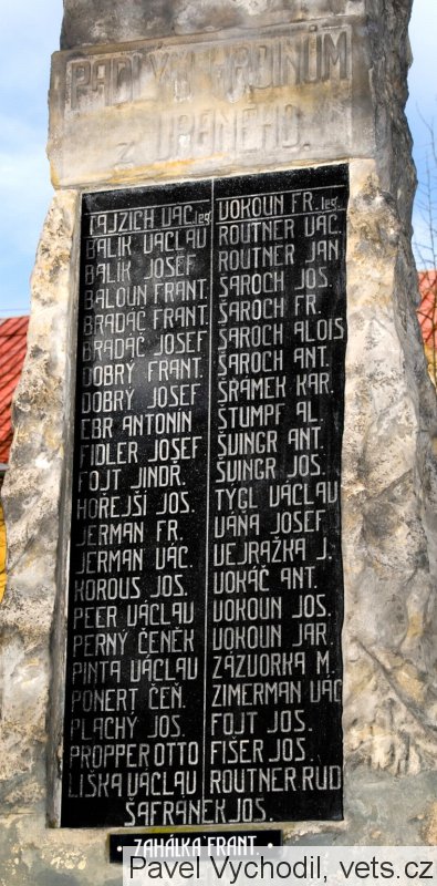 VOKOUN FR. leg., ROUTNER VÁC., ROUTNER JAN, ŠAROCH JOS., ŠAROCH FR., ŠAROCH ALOIS, ŠAROCH ANT., ŠRÁMEK KAR., ŠTUMPF AL., ŠVINGR ANT., ŠVINGR JOS., TÝGL VÁCLAV, VÁŇA JOSEF, VEJRAŽKA J., VOKÁČ ANT., VOKOUN JOS., VOKOUN JAR., ZÁZVORKA M., ZIMERMAN VÁC., FOJT JOS., FIŠER JOS., ROUTNER RUD., ŠAFRÁNEK JOS., ZAHÁLKA FRANT.