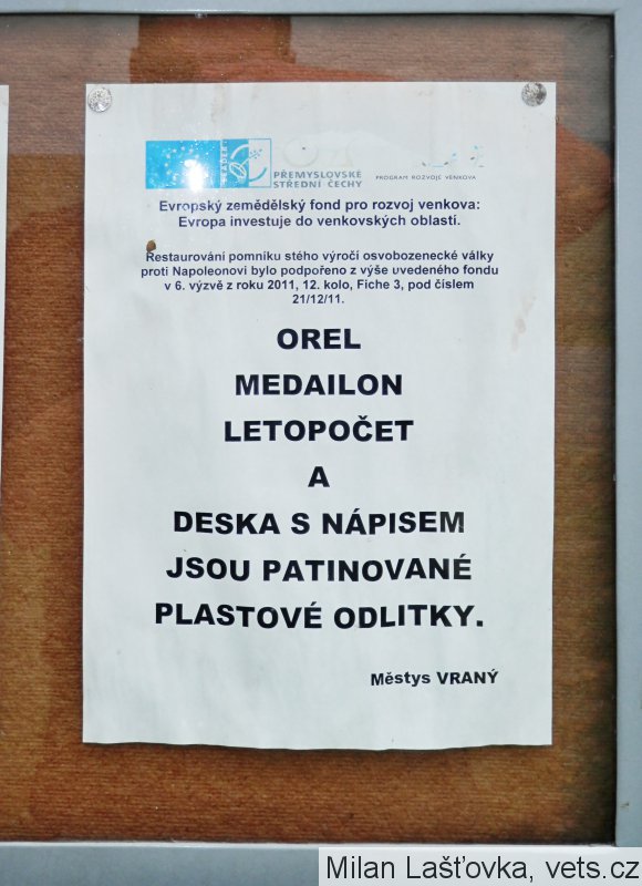 Umístění: Vraný, monumentální pomník u silnice mezi obcemi Vraný a Peruc1813