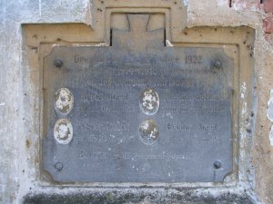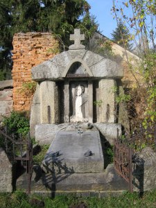 (Generál Läufer, který v Eichmühle (pozn.: nyní Dubský Mlýn) trávil svůj důchod, věnoval v roce 1902 nový hlavní oltář (pozn.: v kostele sv. Martina, který stojí na hřbitově vedle hrobky).