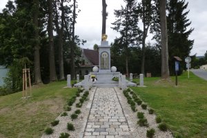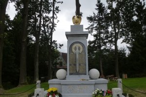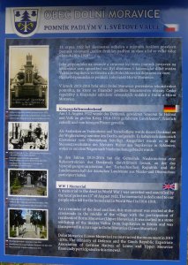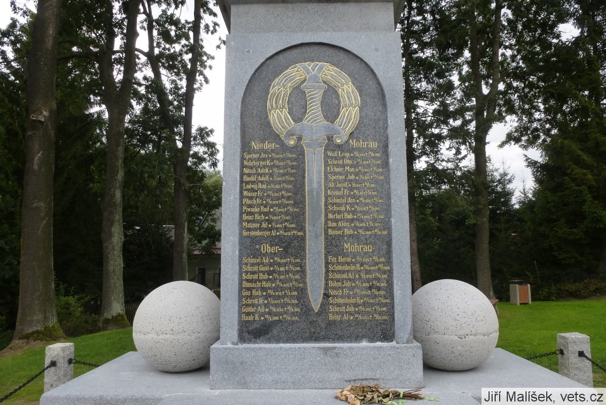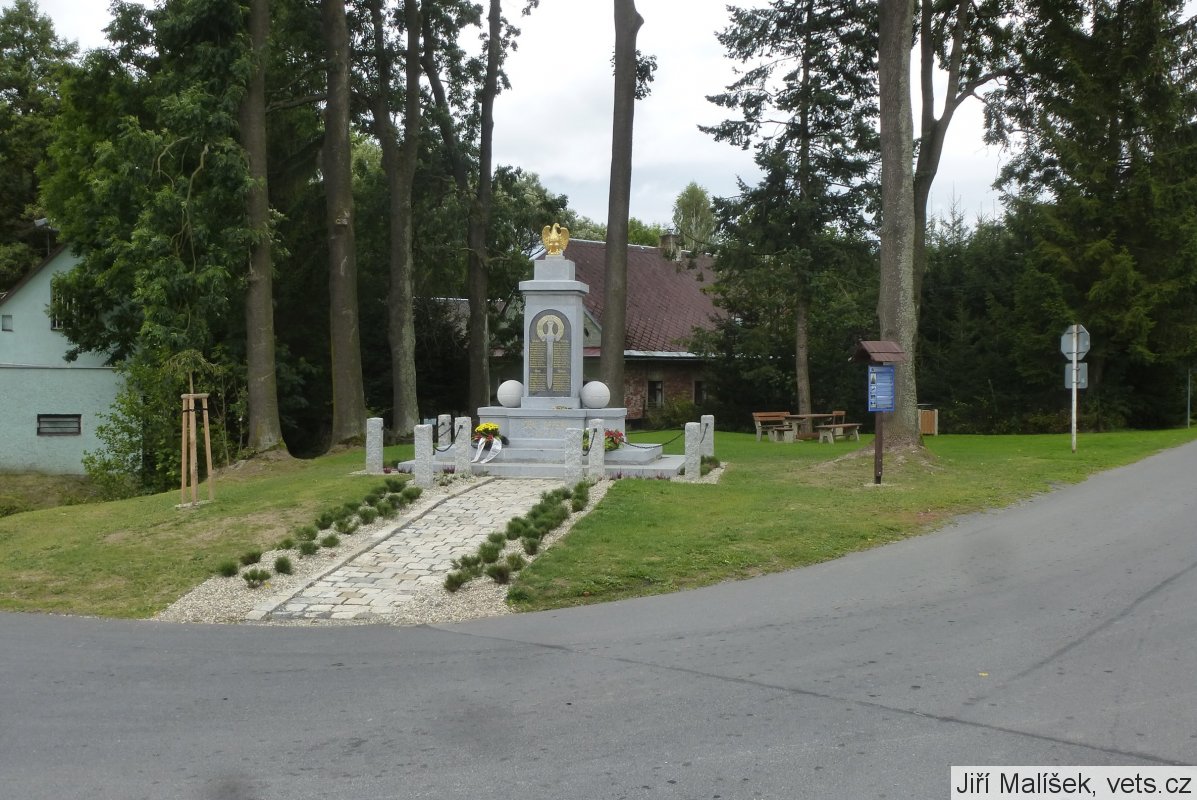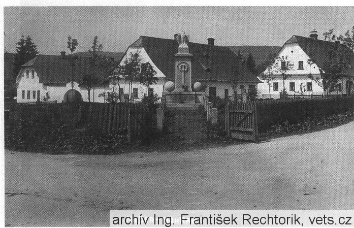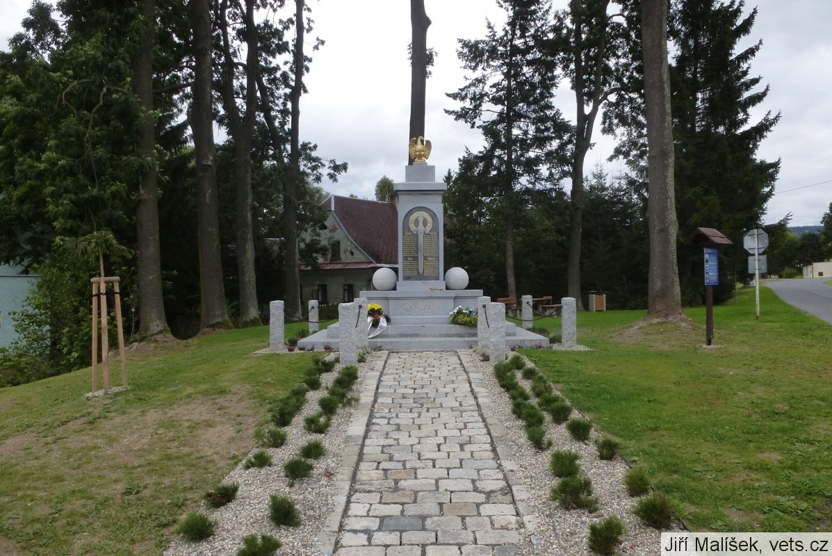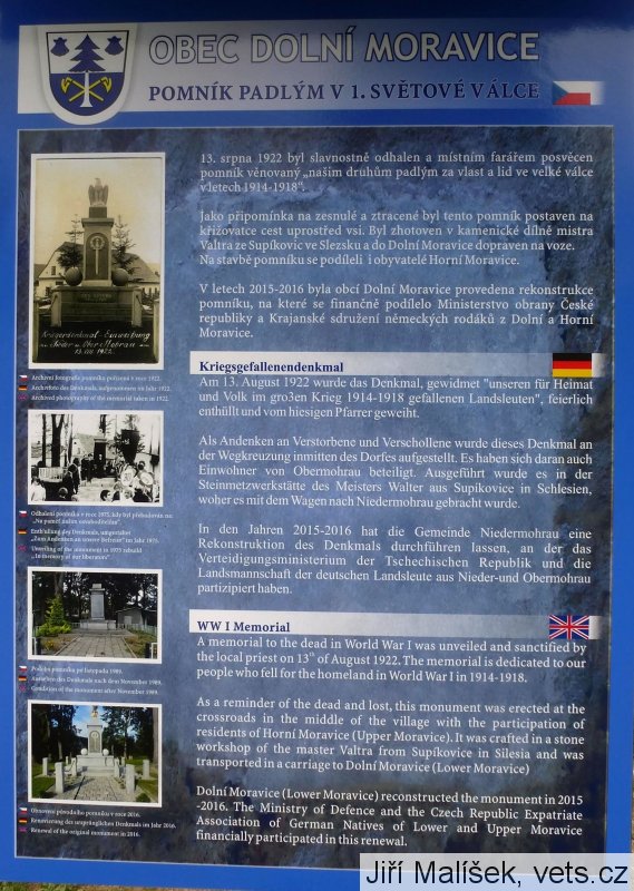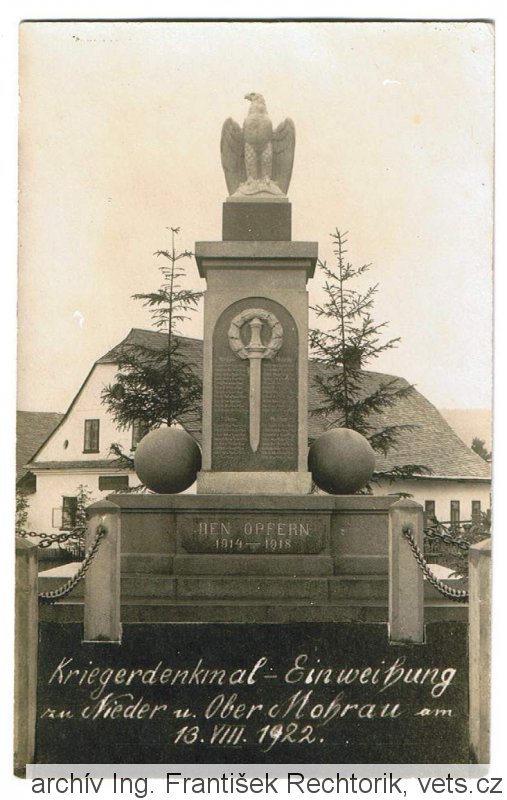 Pomník, slavnostně odhalen 13.2.1922, obsahoval desítky jmen obětí 1. světové války.