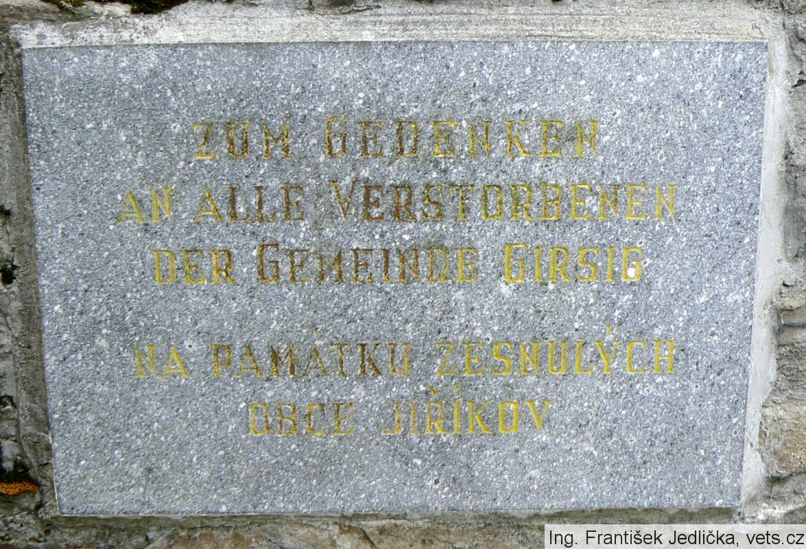 Umístění: Jiříkov, naproti kostelu, u křižovatky v obciNápis:
