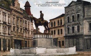 Jezdecký pomník císaře Franze Josefa I. byl odhalen v říjnu 1908, odklizen do depozitáře v roce 1918 a v roce 1938 po nacistickém záboru pohraničí odvezen do Mnichova, kde jeho stopa končí.