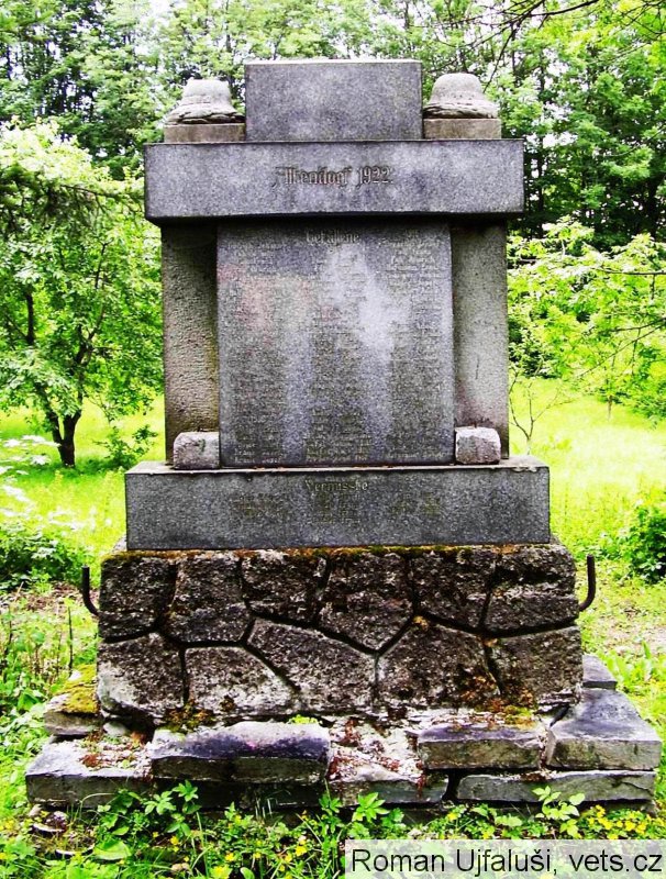 (nápis na vrchní části pomníku - ulomená ležíci na zemi)