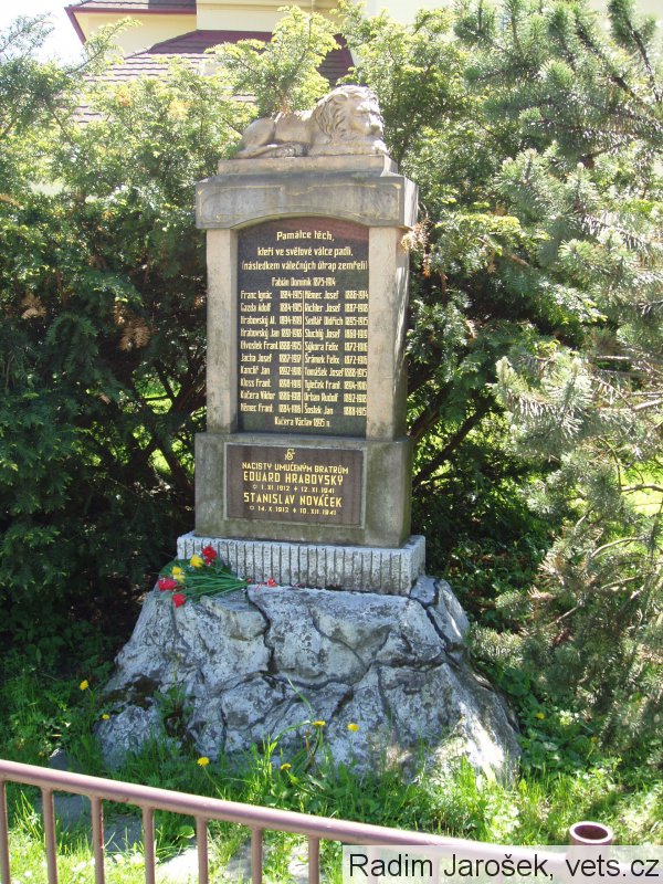V r. 1926 postavila místní osvětová komise ve školní zahradě u silnice pomník těm, kteří ve světové válce padli nebo zemřeli následkem válečných útrap. Slavnostní odhalení pomníku se konalo dne 22. srpna 1926, kdy obec převzala pomník pod svoji ochranu. Pomník byl publikován ve vlastivědném časopise POODŘÍ č. 4/2008.