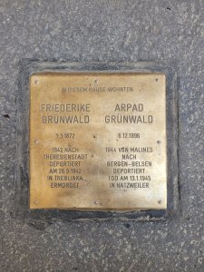 Friederike Grünwald byla deportována do Ghetta Terezín 21.8.1942 transportem IV/8. Do vyhlazovacího tábora Treblinka byla deportována 26.9.1942 transportem Br.