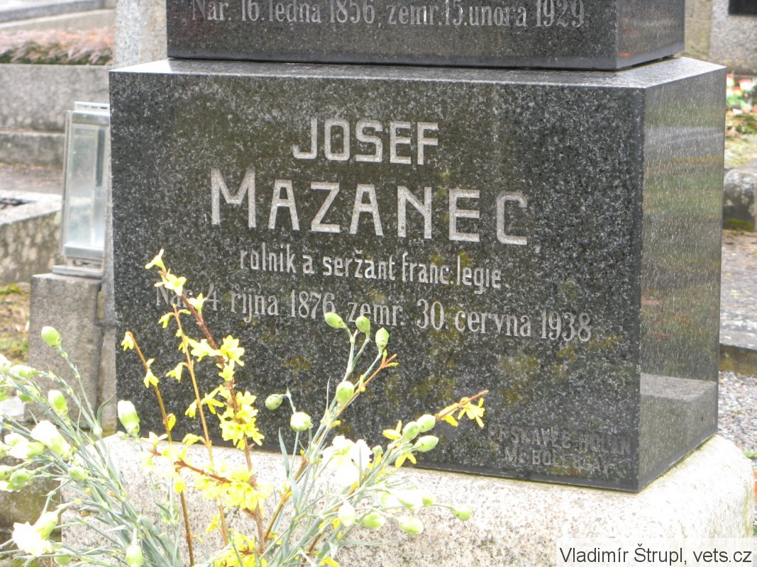 Mazanec Josef: *4.10.1876, Mšeno okr. Mělník. RU armáda: Inft., IR. Nr. 57. Místo a datum zajetí neuvedeno. Zařazení do jiné legie: 9.11.1915. Legie: Čs. legie ve Francii. Poslední útvar v legiích: 22. pĕší pluk. Poslední hodnost v legiích: četař. Konec v legiích: 27.5.1920.