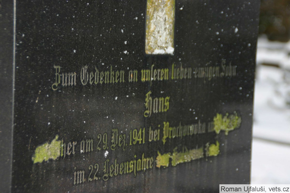 Ficker Johann (domácky Hans): *16.8.1920 Dohle (Dalov). Gefreiter. +29.12.1941 Prochorowka, Rusko. Tamtéž pohřben.