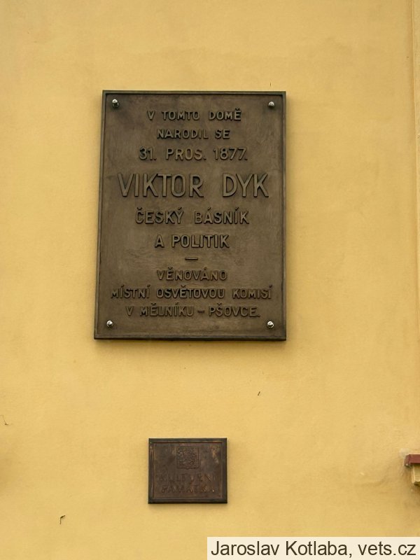 Básník, prozaik, dramatik, publicista a nacionalistický politik Viktor Dyk (* 31.12.1877 Pšovka u Mělníka, + 14.5.1931 Lopud), v mládí jeden z představitelů tzv. generace anarchistických buřičů. Za 1. světové války byl členem domácího odboje.