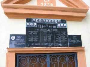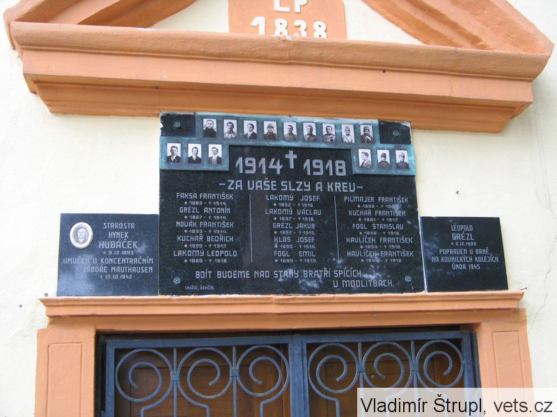 FAKSA FRANTIŠEK *1889 +1914, GRÉZL ANTONÍN *1887 +1914, NOVÁK FRANTIŠEK *1893 +1914, KUCHAŘ BEDŘICH *1899 + 1917, LAKOMÝ LEOPOLD *1888 +1918, LAKOMÝ JOSEF *1892 +1916, LAKOMÝ VÁCLAV *1897 +1918, GRÉZL JAKUB *1892 +1915, KLOS JOSEF *1890 +1916, FOGL EMIL *1889 +1919, PILMAJER FRANTIŠEK *1888 +1914, KUCHAŘ FRANTIŠEK *1881 +1917, FOGL STANISLAV *1898 +1918, HAVLÍČEK FRANTIŠEK *1894 +1918, HAVLÍČEK FRANTIŠEK *1895 +1918,