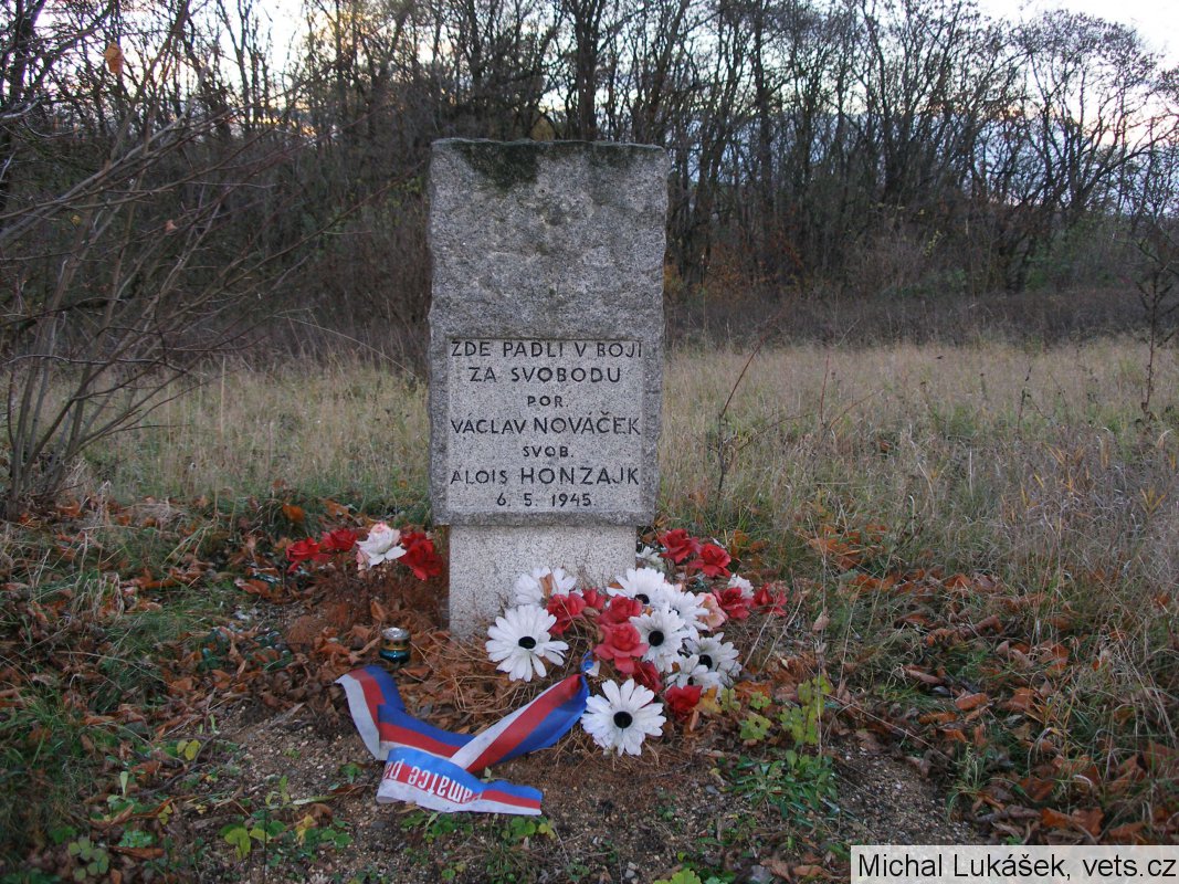 5. května 1945 na místním vojenském velitelství v Kralupech nad Vltavou nabídli své služby bojující Praze, poručík v záloze Václav Nováček z Dolan a svobodník v záloze Alois Honzajk z Nových Ouholic. Druhý den, 6. května 1945, dostali za úkol dopravit do Prahy osobním automobilem náboje a ruční granáty. Když kolem poledne projížděli mírnou zatáčkou za Debrnem, vyrazila proti nim náhle kolona osmi nákladních a dvou osobních vozidel, obsazených příslušníky Waffen-SS. Němci donutili oba muže vystoupit a v příkopu u silnice je oba ranou do týla zavraždili. Německá kolona následně pokračovala dál do Kralup nad Vltavou.
