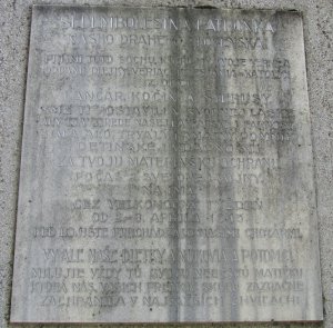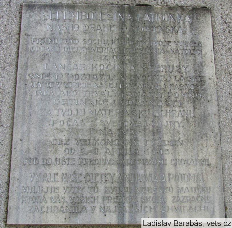 Umístění: Kočín-Lančár, vedľa hlavnej cesty, pred plotom cintorína v časti KočínNápis: