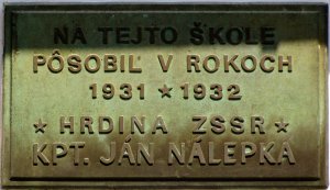 Pamätná tabuľa kpt. Ján Nálepka
