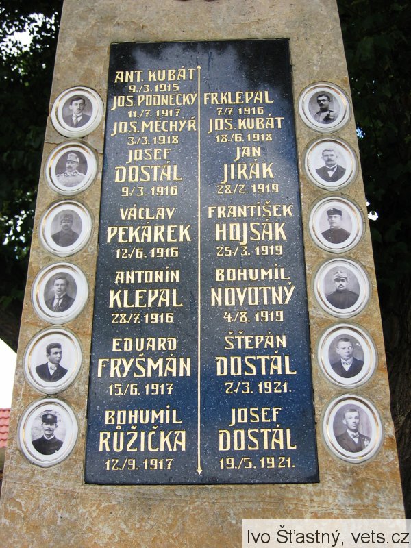 ANT. KUBÁT 9./3. 1915, JOS. PODNECKÝ 11./7. 1917, JOS. MĚCHÝŘ 3./3. 1918, JOS. DOSTÁL 9./3. 1916, VÁCLAV PEKÁREK 12./6. 1916, ANTONÍN KLEPAL 28./7. 1916, EDUARD FRYŠMÁN 15./6. 1917, BOHUMIL RŮŽIČKA 12./9. 1917, FR. KLEPAL 7./7. 1916, JOS. KUBÁT 18./6. 1918, JAN JIRÁK 28./2. 1919, FRANTIŠEK HOJSÁK 25./3. 1919, BOHUMIL NOVOTNÝ 4./8. 1919, ŠTĚPÁN DOSTÁL 2./3. 1921, JOSEF DOSTÁL 19./5. 1921.