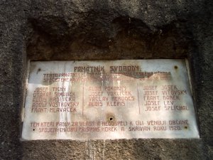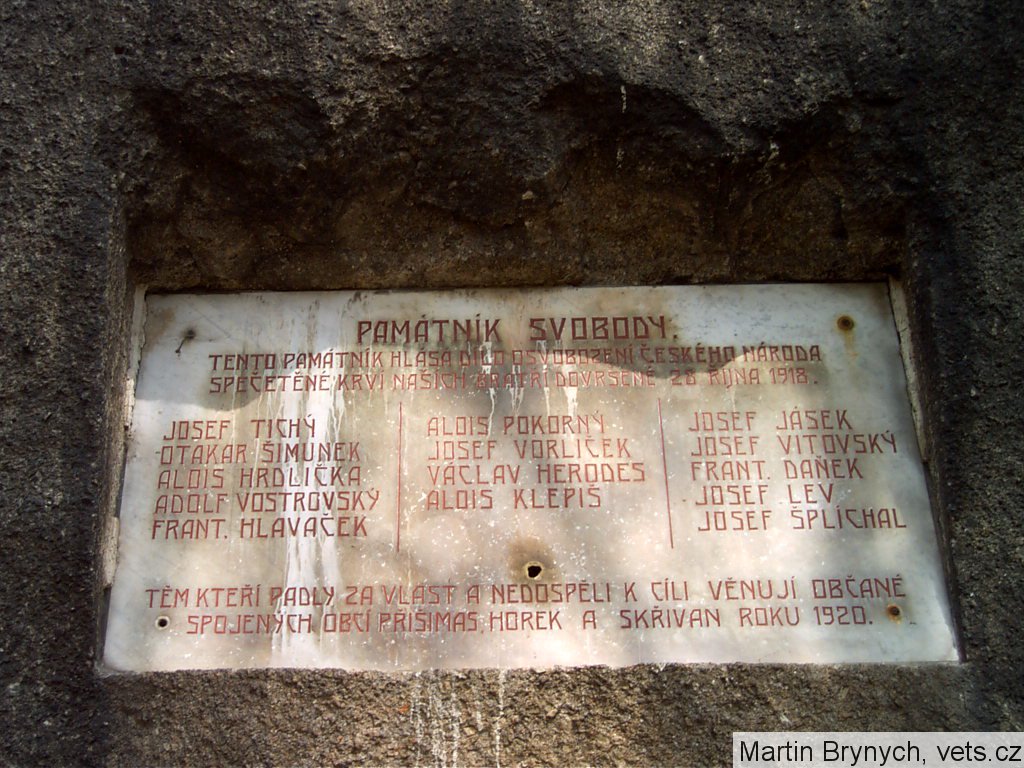Žulový balvan "Slouha". Do něho byla v r. 1920 vsazena pamětní deska padlým v I. sv. válce a byl pojmenován Památník svobody.