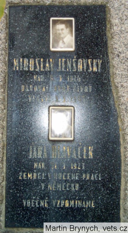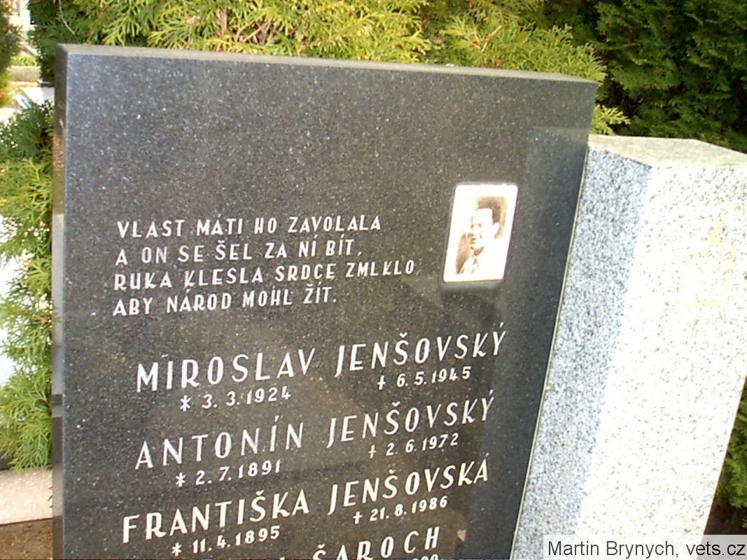 MIROSLAV JENŠOVSKÝ NAR. 3.3.1924 DAROVAL SVŮJ ŽIVOT VLASTI 5.5.1945