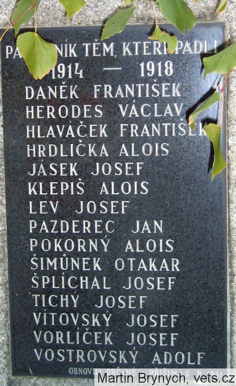 DANĚK FRANTIŠEK, HERODES VÁCLAV, HLAVÁČEK FRANTIŠEK, HRDLIČKA ALOIS, JÁSEK JOSEF, KLEPIŠ ALOIS, LEV JOSEF, PAZDERA JAN, POKORNÝ ALOIS, ŠIMŮNEK OTAKAR, ŠPLÍCHAL JOSEF, TICHÝ JOSEF, VÍTOVSKÝ JOSEF, VORLÍČEK JOSEF, VOSTROVSKÝ ADOLF
