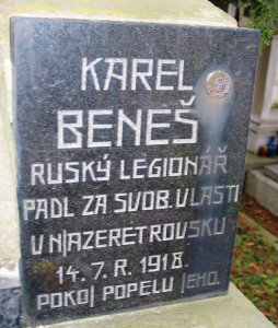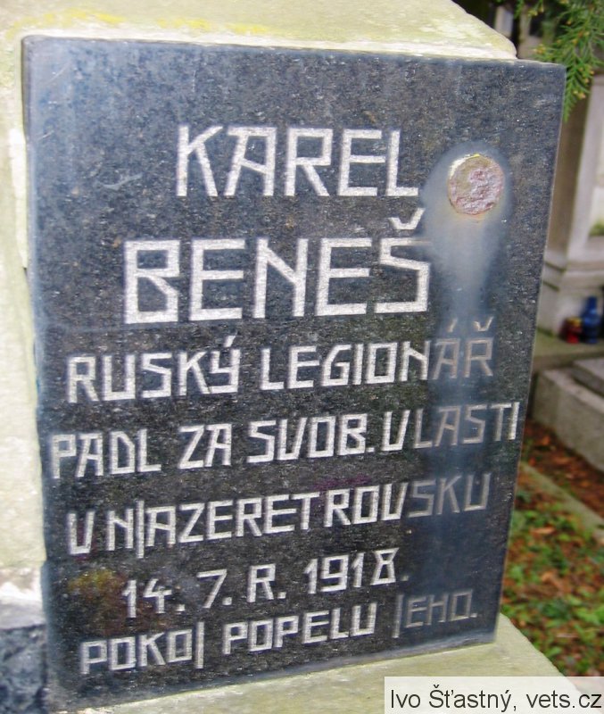 Beneš Karel, nar. 6.12.1895, Labská Týnice. V RU armádě sloužil u 44. pěšího pluku jako vojín. Zajat 16.6.1916, Počajev. Do ČS legií v Rusku se přihlásil v Konaševce, Černigov, zařazen 3.8.1917 jako vojín k 7. střeleckému pluku. Padl 14.7.1918 u Njazepetrovska, zde pohřben, jako příslušník úderného praporu.