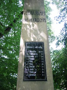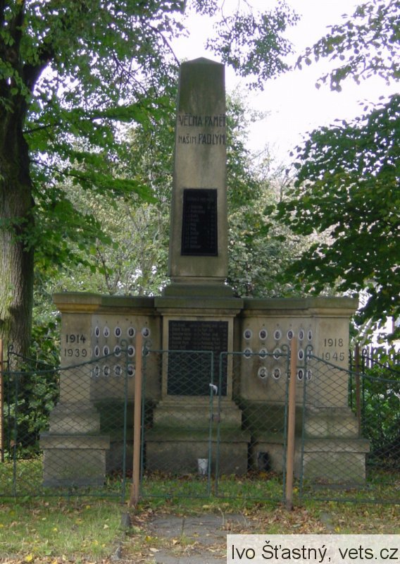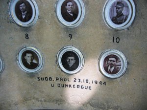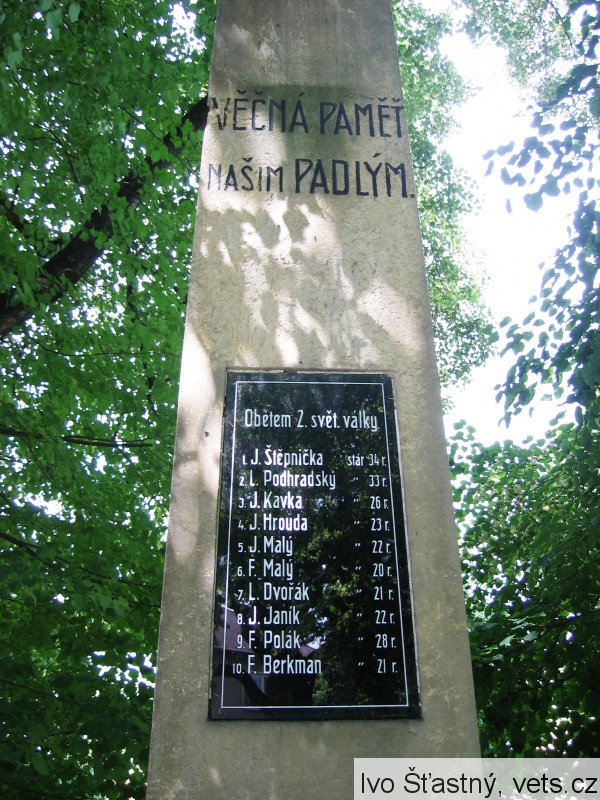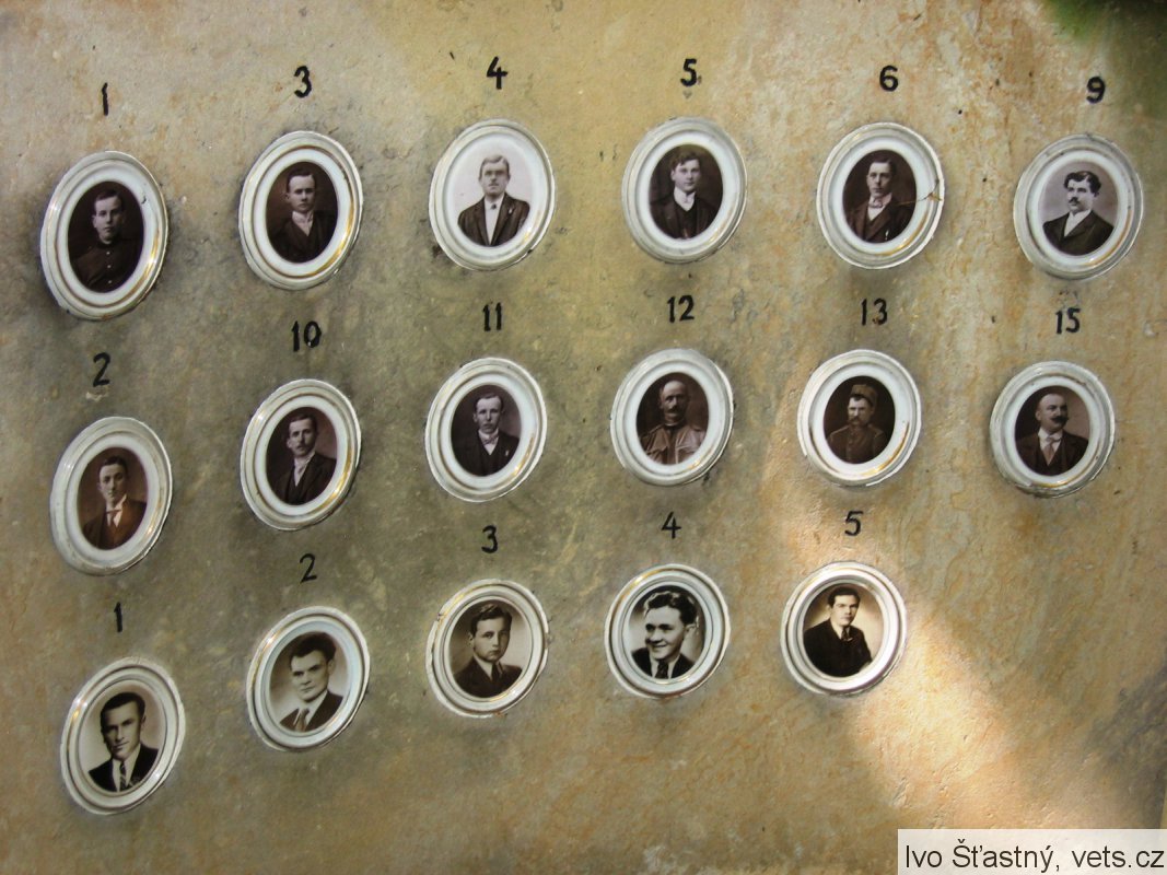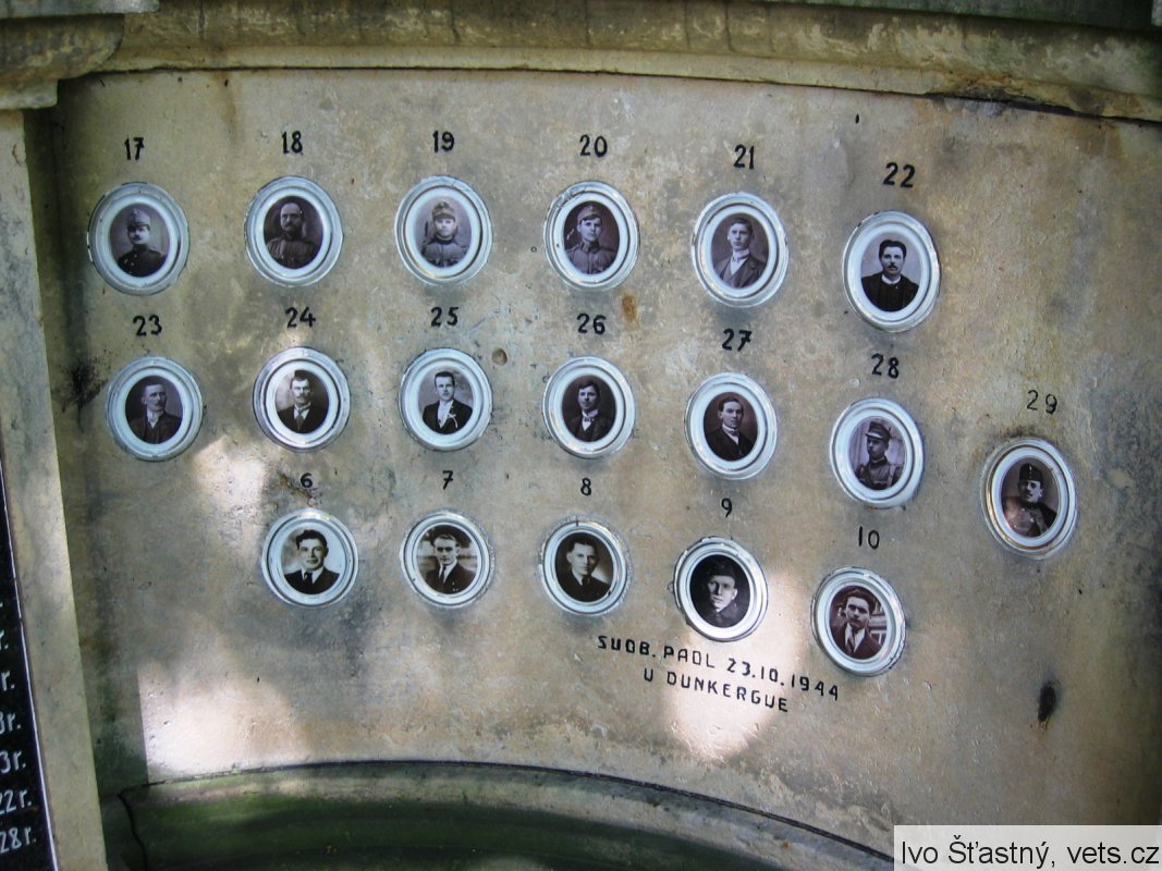 Pořadová čísla u každého jména jsou na pomníku doplněna fotografiemi obětí válek. U F. Poláka (p. č. 9) je u fotografie poznámka SVOB. PADL 23. 10. 1944 U DUNKERQUE.