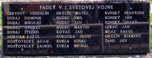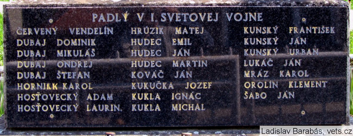 ČERVENÝ VENDELÍN, DUBAJ DOMINIK, DUBAJ MIKULÁŠ, DUBAJ ONDREJ, DUBAJ ŠTEFAN, HORNIAK KAROL, HOSŤOVECKÝ ADAM, HOSŤOVECKÝ LAURIN., HRÚZIK MATEJ, HUDEC EMIL, HUDEC JÁN, HUDEC MARTIN, KOVÁČ JÁN, KUKUČKA JOZEF, KUKLA IGNÁC, KUKLA MICHAL, KUNSKÝ FRANTIŠEK, KUNSKÝ JÁN, KUNSKÝ URBAN, LUKÁČ JÁN, MRÁZ KAROL, OROLÍN KLEMENT, ŠABO JÁN