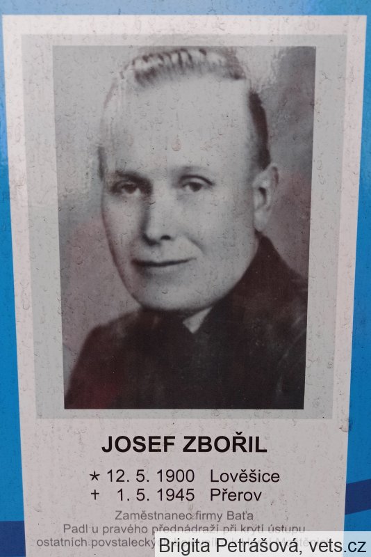 Portrétní fotografie obětí pocházejí z informačního panelu na městském hřbitově v Přerově.