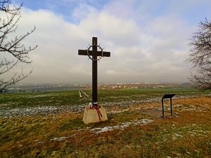 Umístění: Újezdec, Vrch Švédské šance mezi obcemi Horní Moštěnice a Újezdec (část Přerova VI)Nápis na značce KČT (na kříži není žádný nápis):