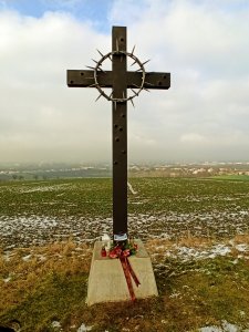 Kovový kříž s trnovou korunou byl odhalen v červnu roku 2018 a je dílem uměleckého kováře Jiřího Jurdy.