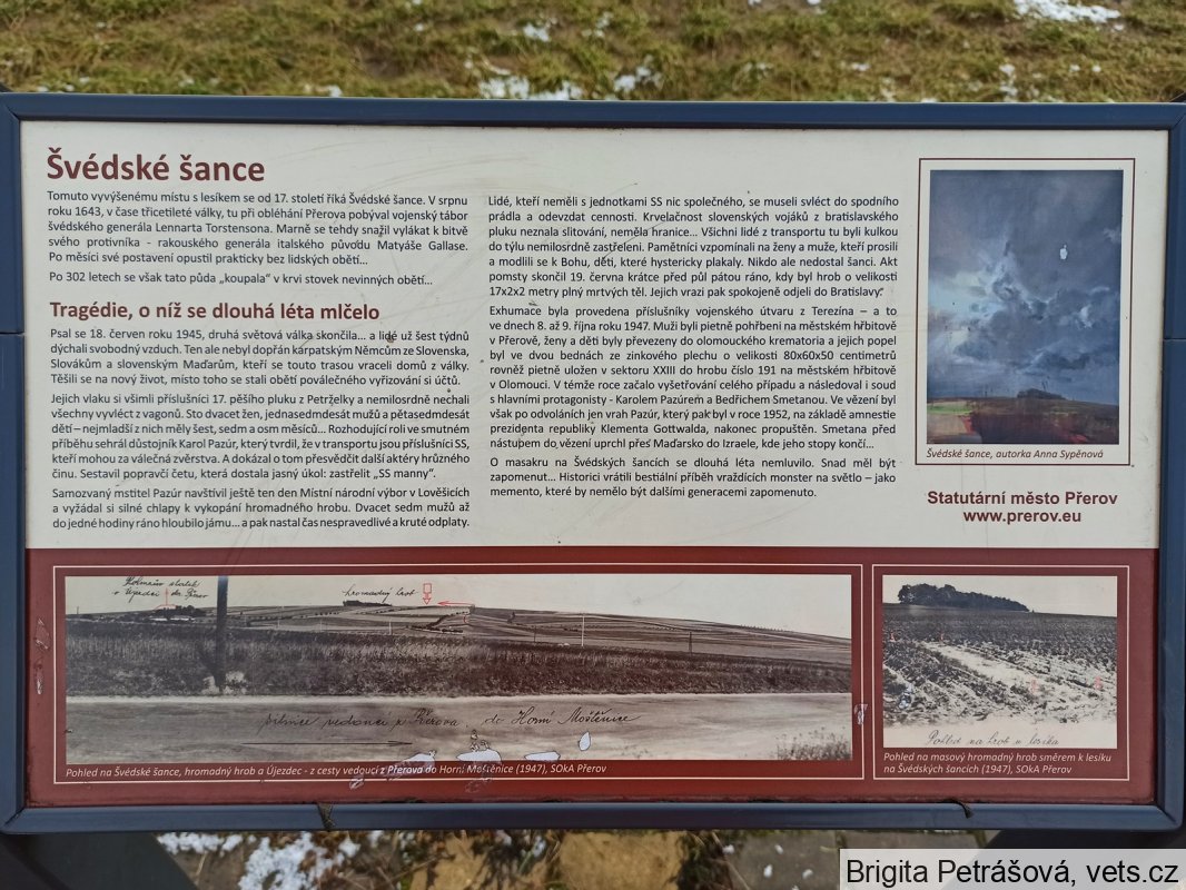 Tomuto vyvýšenému místu s lesíkem se od 17. století říká Švédské šance. V srpnu roku 1643, v čase třicetileté války, tu při obléhání Přerova pobýval vojenský tábor švédského generála Lennarta Torstensona. Marně se tehdy snažil vylákat k bitvě svého protivníka - rakouského generála italského původu Matyáše Gallase. Po měsíci své postavení opustil prakticky bez lidských obětí... Po 302 letech se však tato půda "koupala" v krvi stovek nevinných obětí...