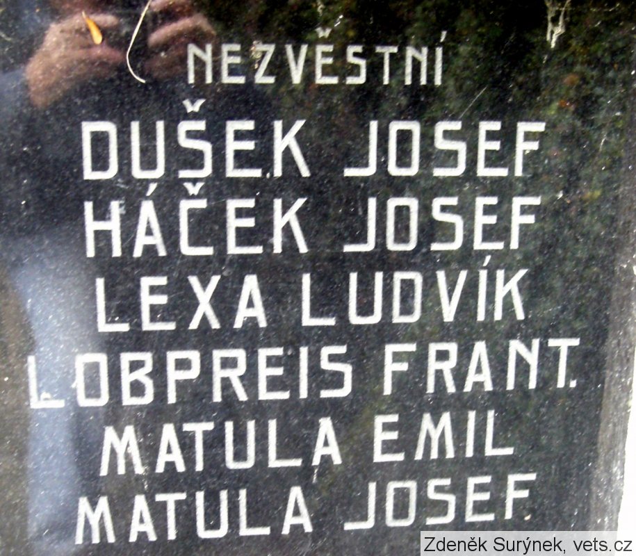 DUŠEK JOSEF, HÁČEK JOSEF, LEXA LUDVÍK, LOBPREIS FRANT., MATULA EMIL, MATULA JOSEF,
