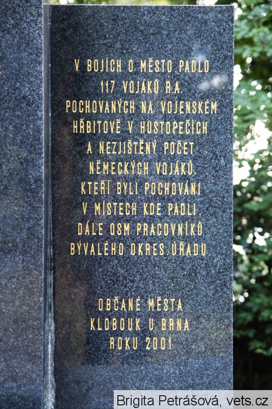Umístění: Klobouky u Brna, Brněnská, hřbitov, před smuteční síníZAHYNULI V BOJÍCH