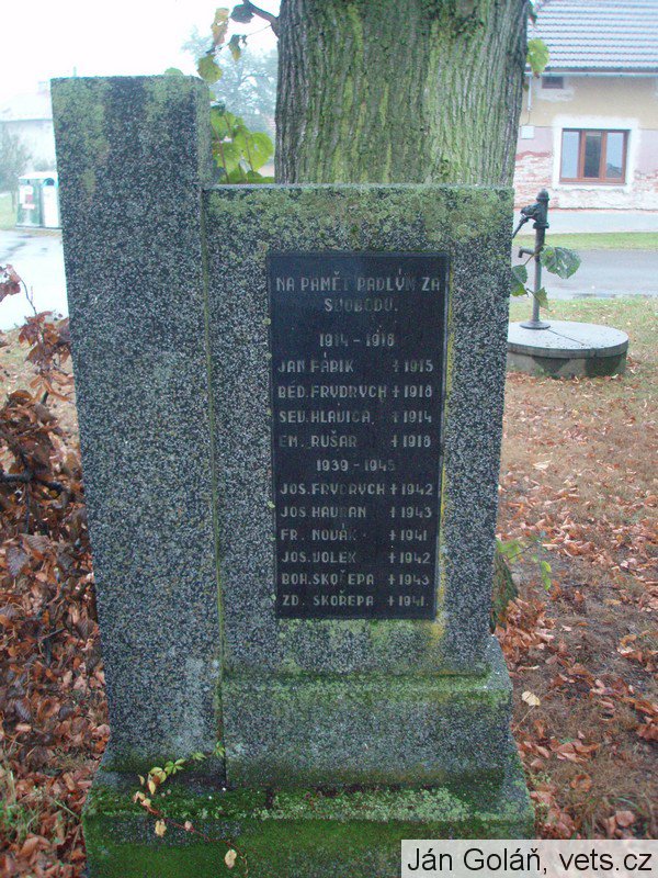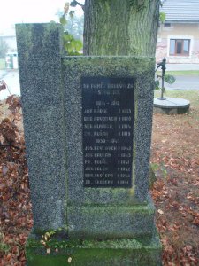Pomník padlým je umístěn v zeleném pásu nedaleko místní kaple. Žulový pomník byl slavnostně odhalen 25.6.1933 u příležitosti vzpomínkové akce na oběti první světové války. Na konci druhé světové války byl pomník doplněn o jména padlých občanů v roce 1939 – 1945.