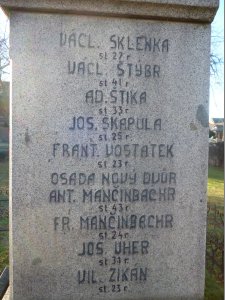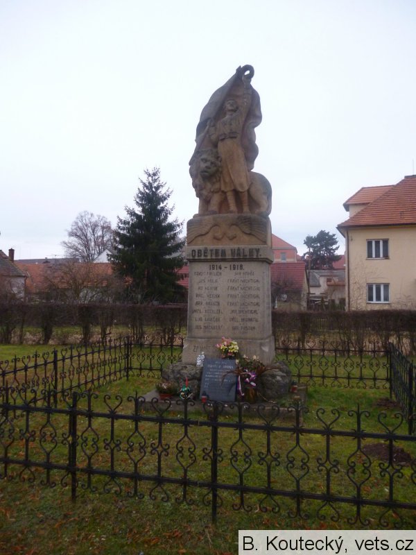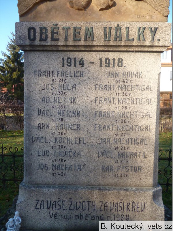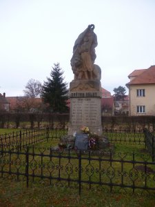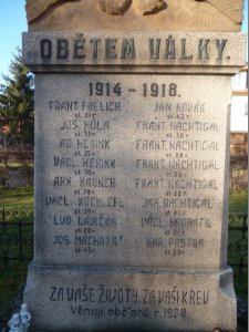 Pomník odhalen 8.7.1928, zhotovitel Rudolf Korf z Příčiny. Za 2. sv. války pomník zakopán, znovu vztyčen 27.5.1945.