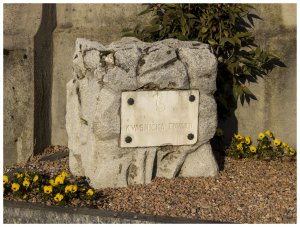 Náhrobek u zdi hřbitova není pouhým pomníkem, ale lze jej považovat za hrob se zbytky ostatků neznámých československých vojáků. Do země pod náhrobkem byly uloženy zbytky kosterních ostatků (několik kostí a úlomků), které byly nalezeny v místě bývalého Československého vojenského hřbitova – zapomenuty na místě dělníky, provádějícími v 60. letech 20. století exhumaci.