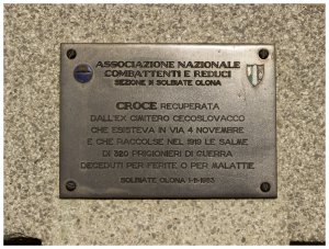 Umístěno na zdi hřbitova, po zrušení Čs. domobraneckého hřbitova v roce 1968 (CIMITERO MILITARE CECOSLOVACCO DI SOLBIATE OLONA), připomínající čs. domobrance, kteří zemřeli v lazaretech a zajateckých táborech. Ostatky čs. domobranců byly převezeny na Válečný hřbitov v Cittadelle: Cimitero Militare Austro – Ungarico di Cittadella.