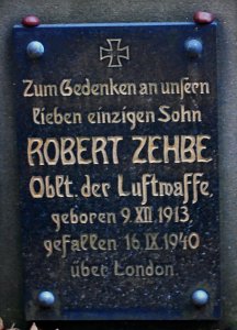 Zehbe Robert byl pilotem Do - 17Z od 1./KG76. Byl sestřelen nad Londýnem, kde byl jeho letoun napaden stíhači naší 310. squadrony (sgt. Půda, Hubáček, Kaucký a F/Lt. Jeffries) ve spolupráci s 504. a 609. squadronou. Zehbe R. ze zasaženého Dornieru vyskočil, ale utrpěným zraněním následujícího dne podlehl. Je pohřben ve vojenské sekci hřbitova Brookwood.