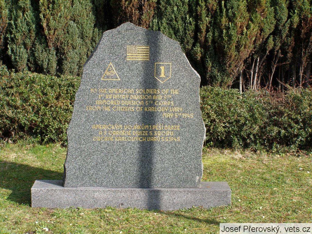 TO THE AMERICAN SOLDIERS OF THE 1ST INFANTRY DIVISION AND 9TH ARMORED DIVISION 5TH CORPS FROM THE CITIZENS OF KARLOVY VARY