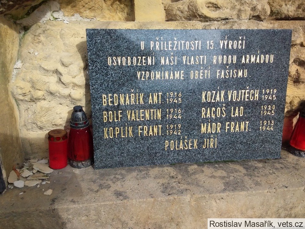 BEDNAŘÍK ANT. 1916-1945, BOLF VALENTIN 1916-1944, KOPLÍK FRANT. 1919-1942, KOZÁK VOJTĚCH 1919-1945, RAGOŠ LAD. 1920-1945, MÁDR FRANT. 1913-1944, POLÁŠEK JIŘÍ
