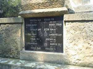 BRÁZDA JAN 1895-1915, HORÁK FR. 1894-1920, BOREK JOSEF 1897-, HUDEC FRAN. 1876-1916, ČEČMAN ANT. 1896-1915, JEŽÍK TOMÁŠ 1881-1919, DOČKAL FRANT. 1897-1918, JANOUŠEK JAN 1873-1917, FRGÁL JOS. 1880-1914, KOUTNÝ AL. 1870-1917, GREGÁREK AR. 1882-1915, KUPČÍK JOS. 1886-1915, HORÁK KAR. 1887-1915, MINAŘÍK FR. 1895-1915