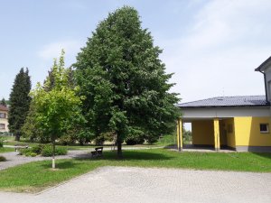 Lípa srdčitá, vysazena 28.10.1998. Tehdejší členové skautských oddílů se rozhodli k výročí 80. letům vzniku naší republiky vysadit Lípu jako nejspíš první "Strom republiky" ve Zlatých Horách. Zatím se nám totiž nepovedlo vypátrat jiný.