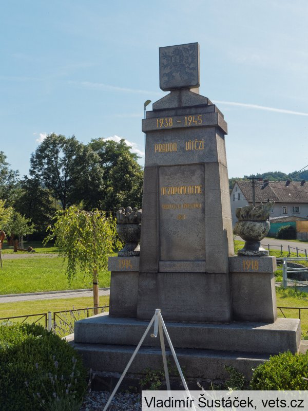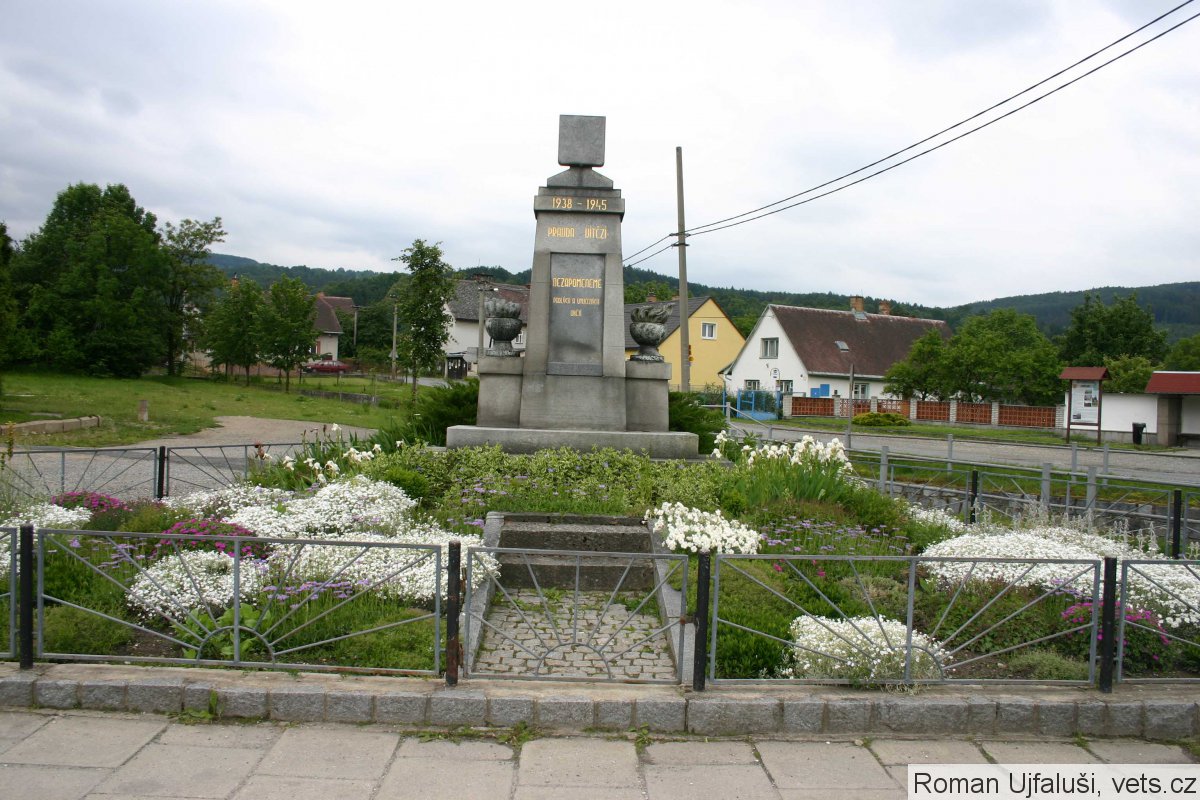 Po roce 1945 byl pomník přeměněn na pomník obětem 2. světové války. Německá orlice byla nahrazena znakem ČSR, byl odstraněn kříž z přední strany pomníku, deska se seznamem obětí byla nahrazena současným nápisem a byl doplněn letopočet 1938 – 1945.