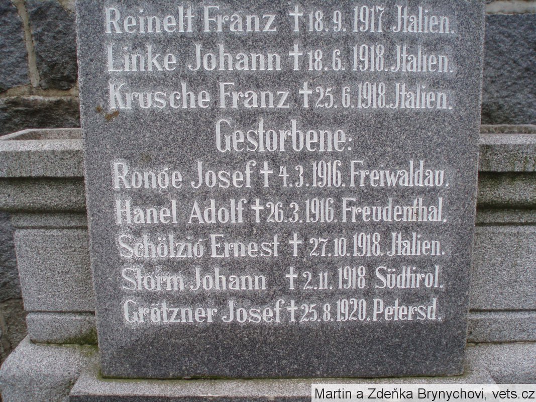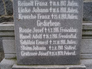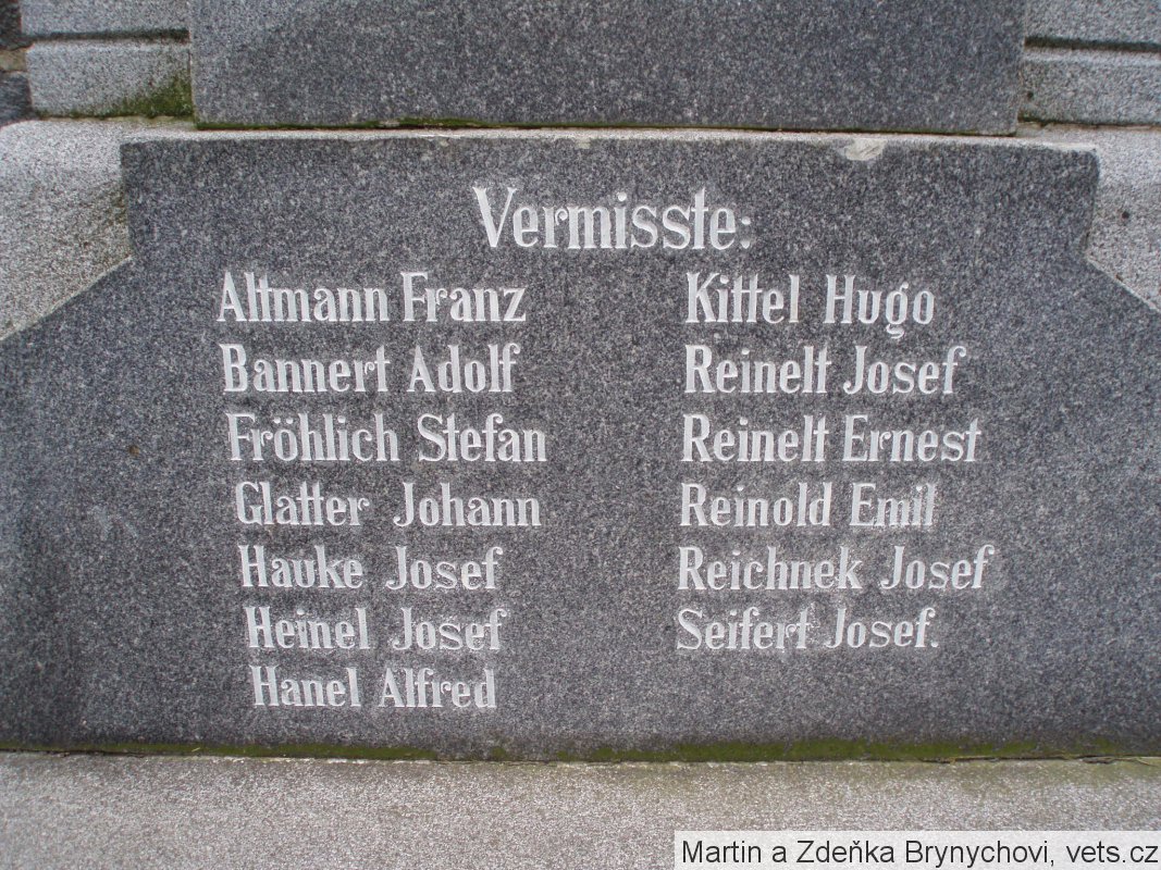 Altmann Franz, Bannert Adolf, Fröhlich Stefan, Glatter Johann, Hauke Josef, Heinel Josef, Hanel Alfred, Kittel Hugo, Reinelt Josef, Reinelt Ernest, Reinold Emil, Reichnek Josef, Seifert Josef