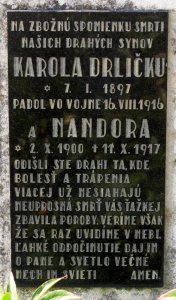 jeho meno je uvedné na pomníku padlých v 1. svetovej vojne
