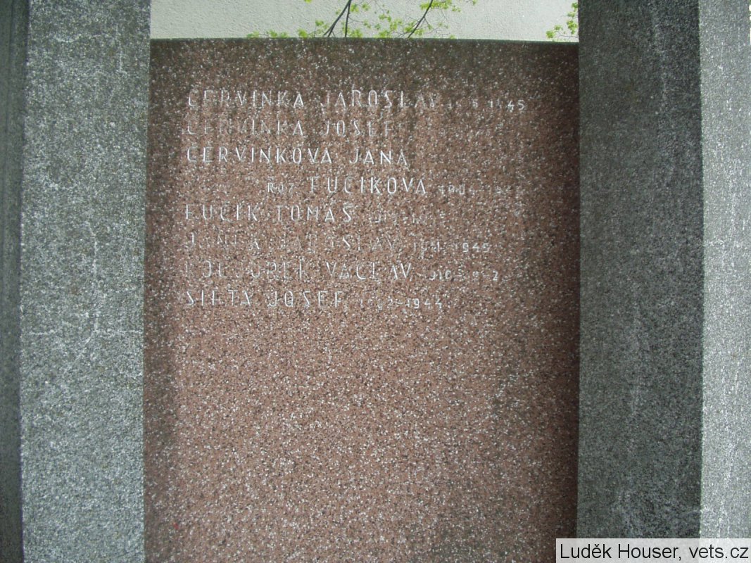 ČERVINKA JAROSLAV 1915-1945, ČERVINKA JOSEF 1911-1945, ČERVINKOVÁ JANA ROZ. FUČÍKOVÁ 1904-1945, FUČÍK TOMÁŠ 1919-1945, JANEK JAROSLAV 1911-1945, KOCOUREK VÁCLAV 1910-1942, ŠIFTA JOSEF 1902-1944