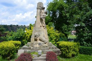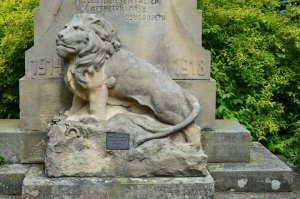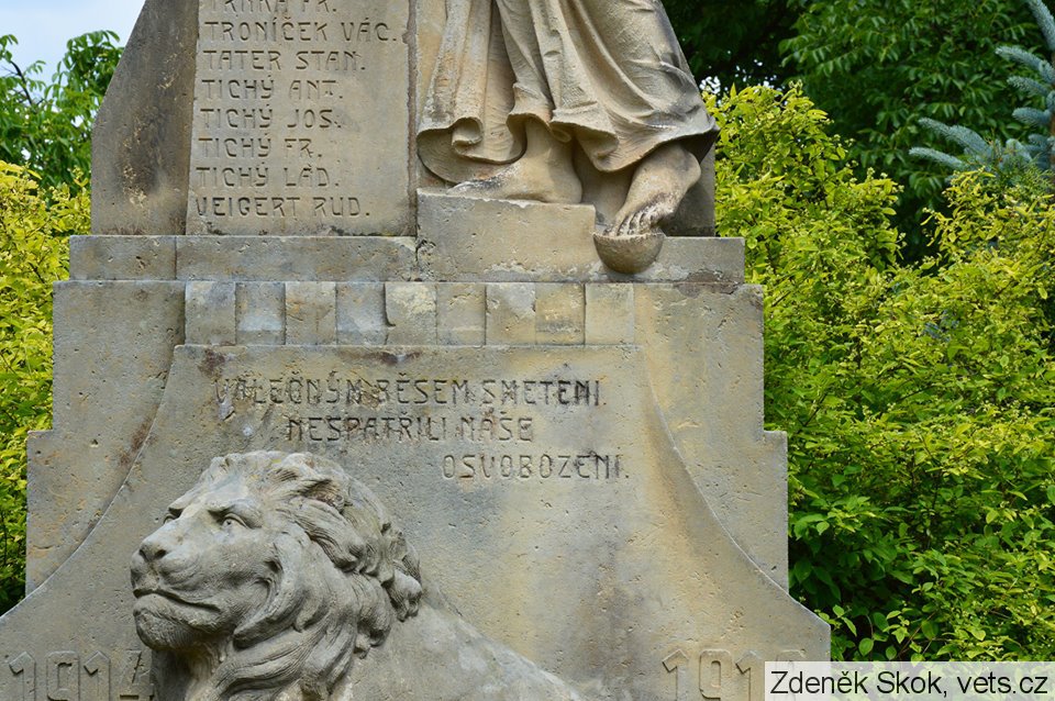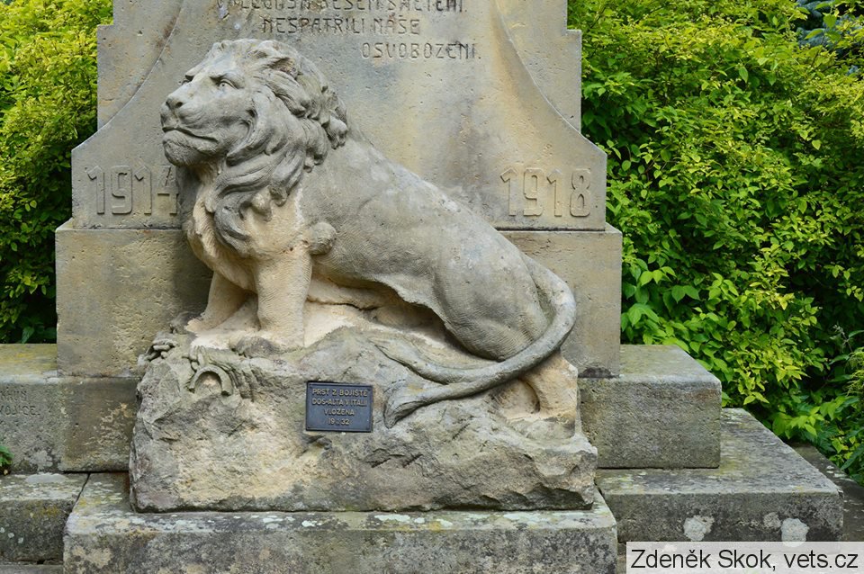 chybí nápis z destičky na lvovi, pravděpodobně autor pomníku