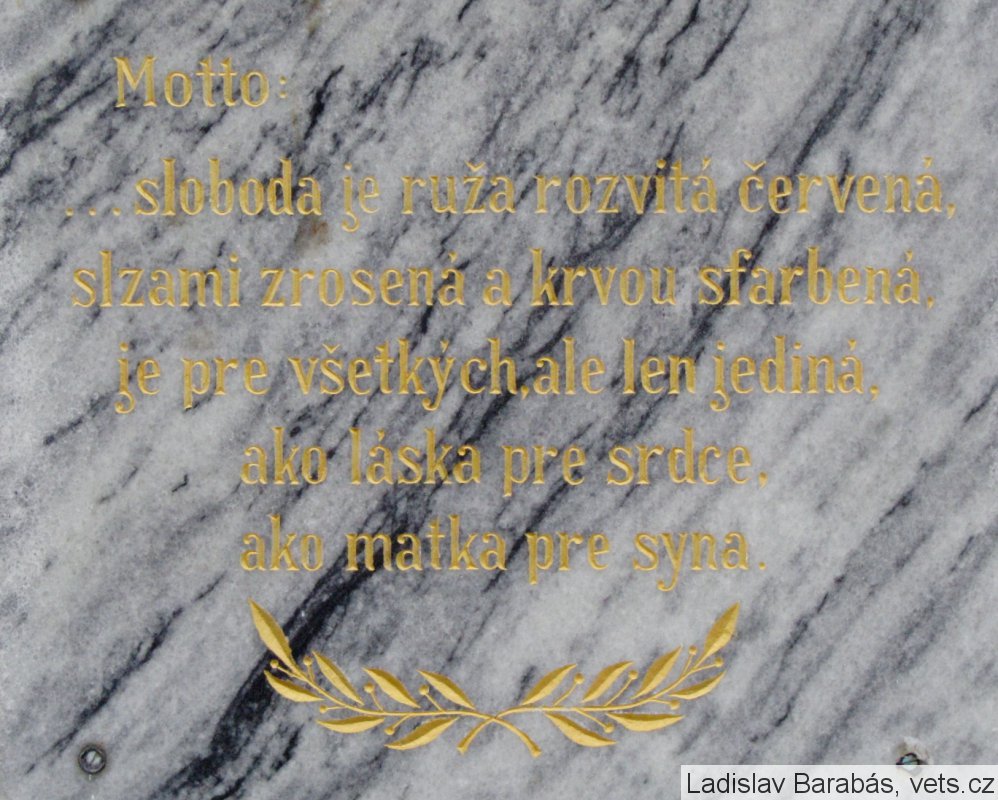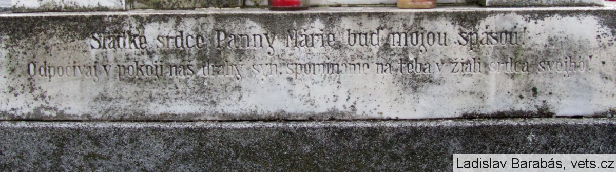 Umístění: Zeleneč, Cintorínska, v prednej časti cintorína, vľavo od chodníka ku kaplnkeNápis: