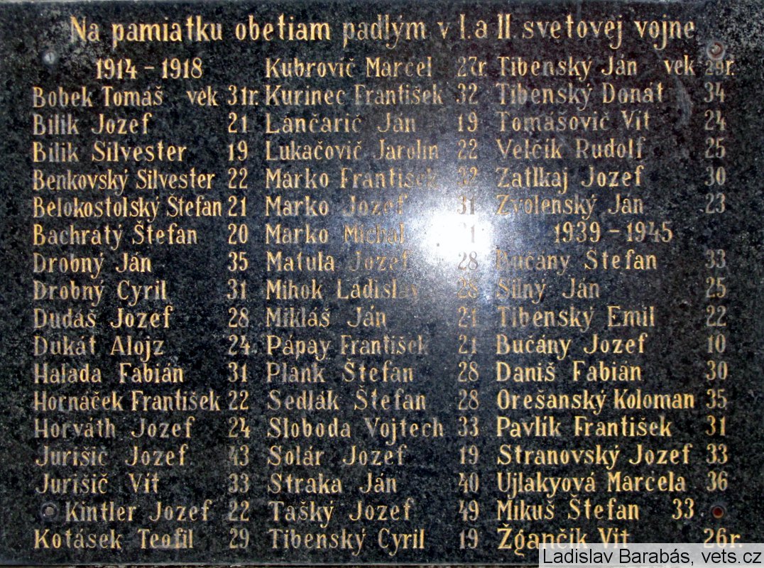 Bobák Tomáš vek 31 r., Bílik Jozef 21, Bílik Silvester 19, Benkovský Silvester 22, Belokostolský Štefan 21, Bachratý Štefan 20, Drobný Ján 35, Drobný Cyril 31, Dudáš Jozef 28, Dukát Alojz 24, Halada Fabián 31, Hornáček František 22, Horváth Jozef 24, Jurišič Jozef 43, Jurišič Vít 33, Kintler Jozef 22, Kotásek Teofil 29, Kubrovič Marcel 27 r., Kurinec František 32, Lančarič Ján 19, Lukačovič Jarolín 32, Marko František 32, Marko Jozef 31, Marko Michal 21, Matula Jozef 28, Mihok Ladislav 28, Mikláš Ján 21, Pápay František 21, Plank Štefan 28, Sedlák Štefan 28, Sloboda Vojtech 33, Solár Jozef 19, Straka Ján 40, Tašký Jozef 49, Tibenský Cyril 19, Tibenský Ján vek 29 r., Tibenský Donát 34, Tomašovič Vít 24, Velčík Rudolf 25, Zatlkaj Jozef 30, Zvolenský Ján 23