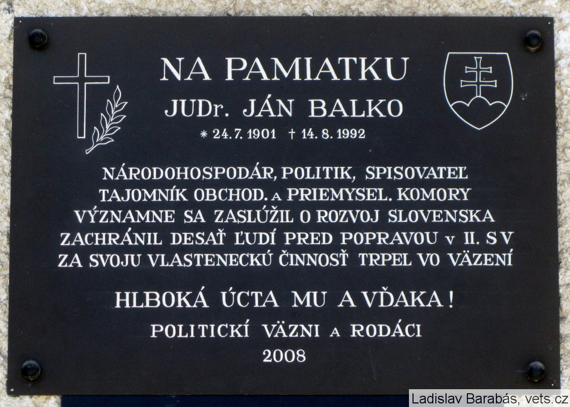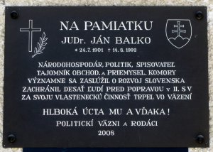 Pamätná tabuľa Ján Balko