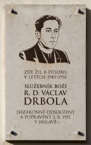 Pamětní deska páteru Václavu Drbolovi, oběti komunistické justice, byla na průčelí Katolického domu odhalena 4.5.2005 spolu s pamětní deskou páteru Janu Číhalovi, oběti nacistické okupace.